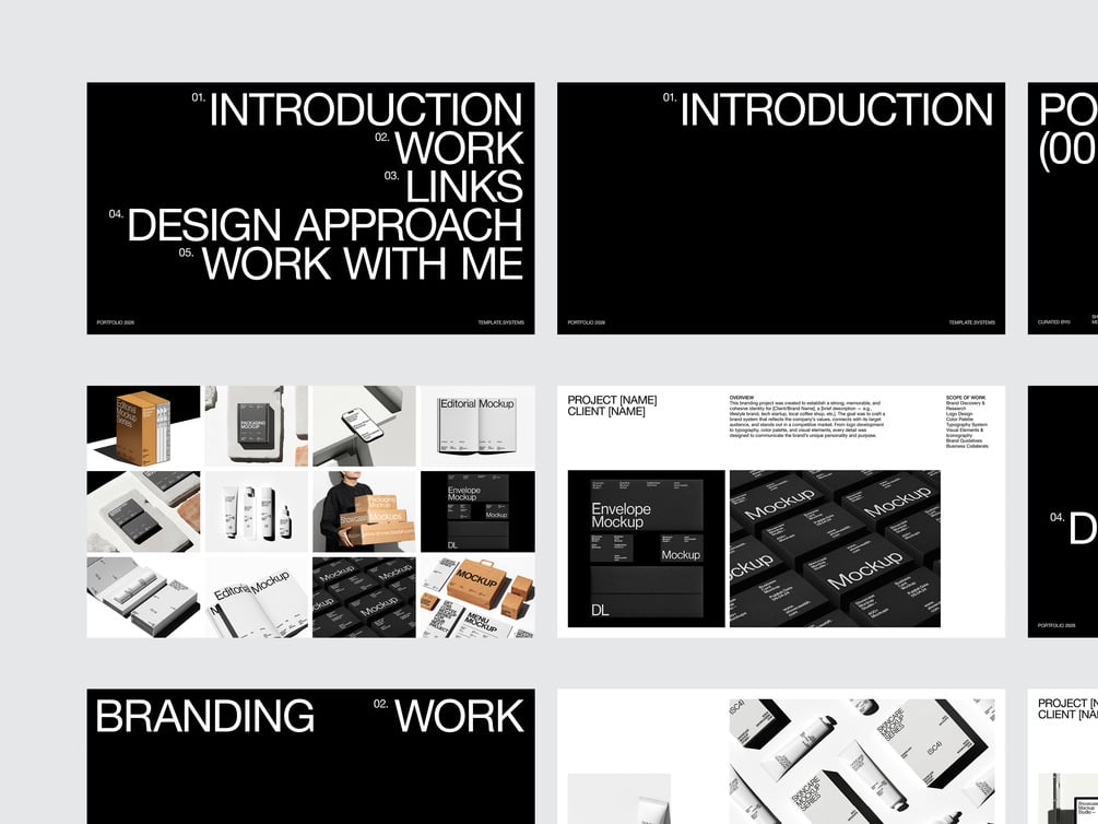 Qty: 1This Branding Portfolio Bundle contains our Portfolio templates + 12 best-selling Branding mockups from Showcase Mockup Studio. As you build your portfolio, having the right tools makes all the difference—these templates provide a strong structure, while the mockups help you present your work in a clean, refined, and professional way.